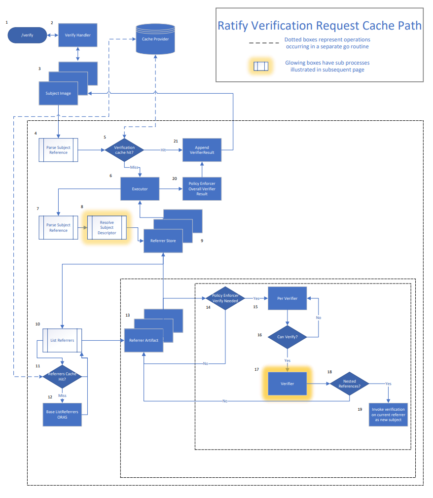 /verifyhandler. This cache is required when Ratify gets multiple simulataneous requests for verification of the same image. Cache items should be very short lived.